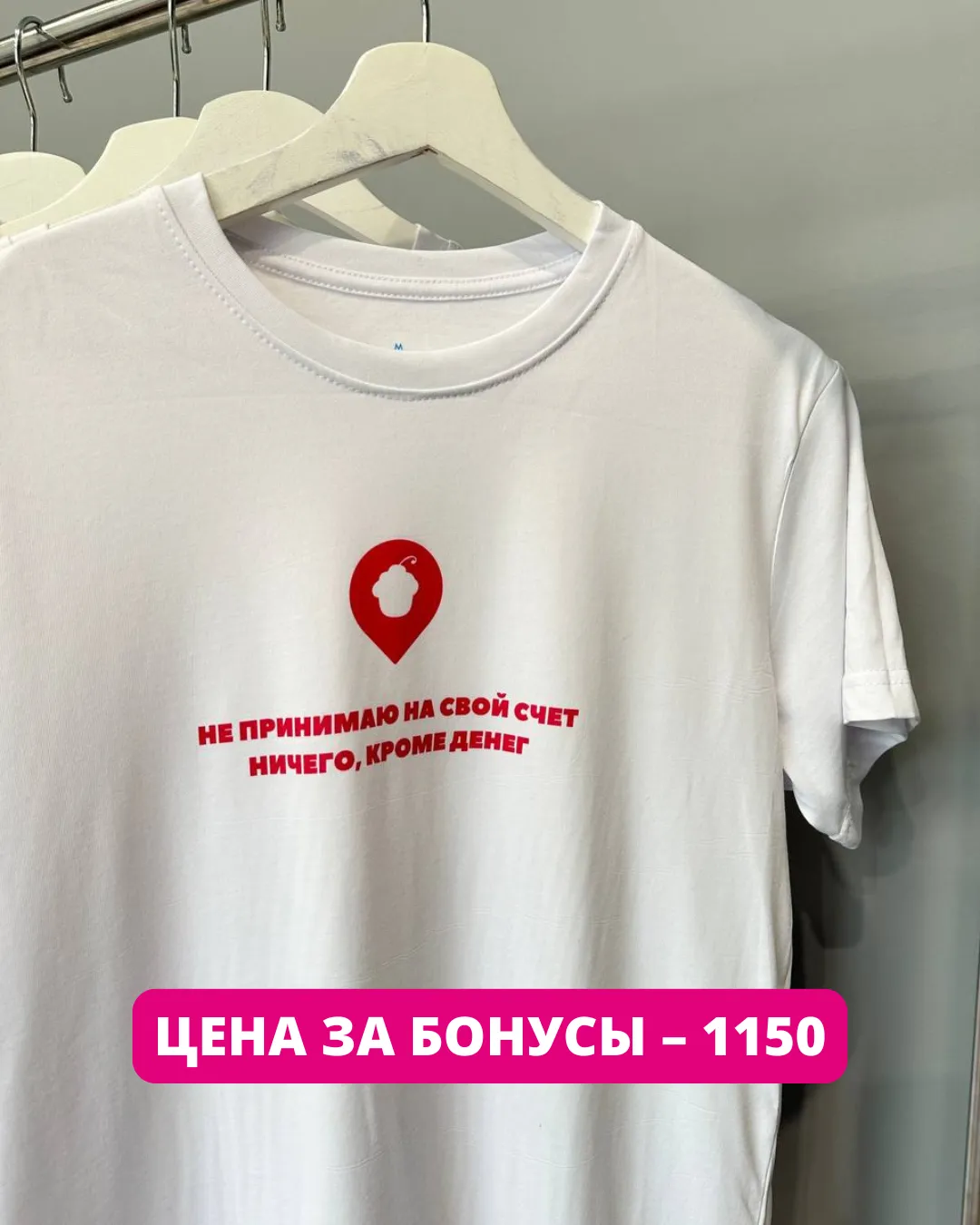 Этот мерч мы запустили специально для тех, кто любит стиль и торты! Теперь у вас есть уникальная возможность приобрести тематическую футболку с яркими надписями не только обычным способом, но также за бонусы, получая еще больше выгоды! Чтобы приобрести товар за бонус напишите нашему менеджеру!