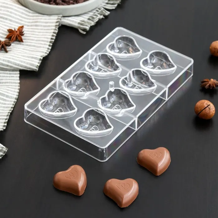 *Поликарбонатная форма для шоколада "Сердце" 8 ячейка